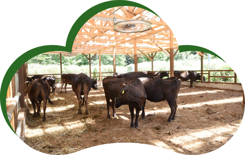 緑豊か宮崎県延岡市に牛舎をかまえ、綺麗な水と空気の中でストレスを与えない牛舎により、のびのびと牛たちは過ごしています。